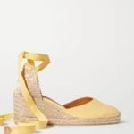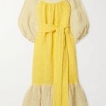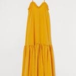 Feel the sunshine in this saffron maxi dress with matching tonal wrap around sandals and raffia bucket bag. Elevate the whole look by adding highlights of gold accessories, a few curls in your hair and a pair of chic sunglasses.